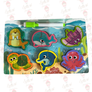 ¡El juguete que combina el desafío del puzle con la diversión del dibujo! Este set es un tablero de encaje de madera con temática submarina que incluye varias figuras de animales, cada una dividida en solo dos piezas, lo que lo hace ideal para niños que recién se inician en el ensamblaje. Además, incluye un rotulador para dibujar y borrar. Características Principales: Puzles de Fauna Marina: El tablero presenta seis criaturas marinas amistosas y coloridas: Una Morsa, Una Ballena, Una Tortuga, Un Delfín, Un Pulpo y Una mantarrayas. Mecánica de 2 Piezas: Cada animal está formado por solo dos piezas de puzle, lo que simplifica el desafío y lo hace accesible para niños muy pequeños. Función de Pizarra: El puzle está cubierto por una capa plástica transparente que lo convierte en una pizarra borrable. Incluye un rotulador verde, permitiendo a los niños dibujar sobre el tablero, practicar la escritura o colorear la escena. Desarrollo de Habilidades Clave: Lógica Temprana: Ensamblar las dos piezas correctamente desarrolla el reconocimiento de forma y la coordinación. Motricidad Fina: Se practica al encajar las piezas y al usar el rotulador. Juego Sensorial: La capacidad de dibujar y borrar en el tablero añade una dimensión creativa y sensorial. Construcción de Madera: La base y las piezas están hechas de madera, y el tablero simula un fondo oceánico con algas y burbujas. ¡Un juguete versátil que ofrece doble valor: el desafío del ensamblaje y la creatividad de dibujar en una pizarra temática!