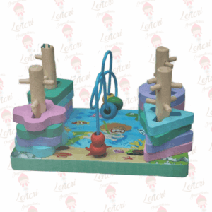 Laberinto de Cuentas: Un laberinto tridimensional con cuentas y figuras de madera que los niños deslizan por los rieles curvos.