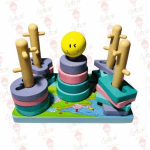 Sus colores llamativos y el práctico diseño con perillas facilitan la manipulación por manos pequeñas, mientras que la madera resistente y los acabados seguros garantizan un uso duradero y confiable.