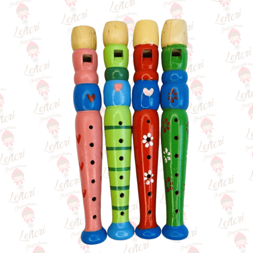 Diseños Vibrantes y Atractivos: Cada flauta presenta una combinación de colores alegres y patrones pintados a mano, capturando la atención visual de los niños.