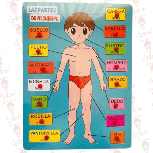 Bilingüe (Español e Inglés): Cada pieza nombra la parte del cuerpo en español y su traducción al inglés (ej: Cabeza/Head, Brazo/Arm). ¡Perfecto para ampliar vocabulario!