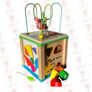 Palo para Empujar y Mover: Cada juguete viene con un palo largo de madera diseñado para que el niño lo sostenga y empuje mientras camina. Esto estimula la motricidad gruesa y la confianza al desplazarse. Diseños Temáticos Variados: Disponibles en diferentes y divertidos diseños. Cuerpo Articulado o Bolas: Las secciones o bolitas traseras se mueven o giran y producen un sonido de traqueteo suave al empujar, añadiendo un estímulo auditivo y visual. Campanas Internas: Otros diseños pueden tener un cascabel o campanas internas que suenan al rodar. Desarrollo Integral: Motricidad Gruesa: El empuje promueve el caminar, el equilibrio y la fuerza en las piernas. Coordinación Ojo-Mano: El niño aprende a controlar el palo y el juguete mientras avanza. Construcción de Madera Segura: Fabricados con madera maciza, ruedas estables y pintura no tóxica y colorida. ¡El juguete esencial para celebrar los primeros pasos, añadiendo un amigo divertido y rítmico que acompaña al bebé en cada aventura!Cubo motricidad 4 en 1