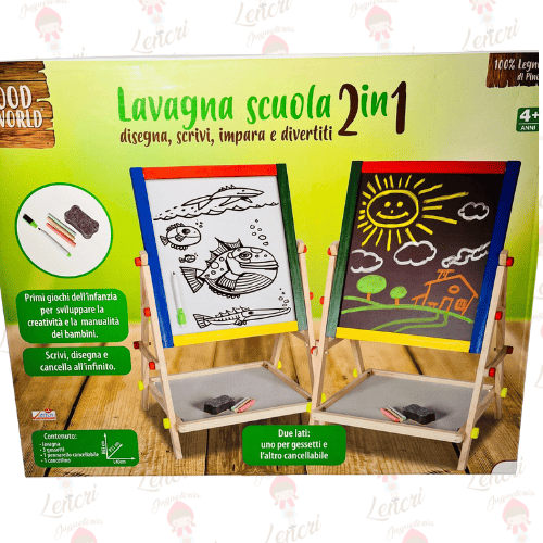 Esta es una pizarra escolar de doble cara ideal para dibujar, escribir, aprender y divertirse sin límites. Este caballete de madera ofrece dos superficies de juego distintas: