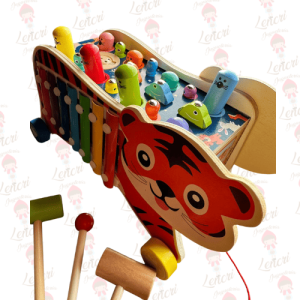 ✨ Beneficios principales: ✅ Estimula la coordinación mano-ojo y la motricidad fina ✅ Introduce conceptos musicales básicos con el xilófono ✅ Fomenta el equilibrio y la movilidad con su diseño para arrastrar ✅ Material de madera resistente con acabados seguros y no tóxicos ✅ Diseño colorido y atractivo en forma de tigre para captar la atención infantil