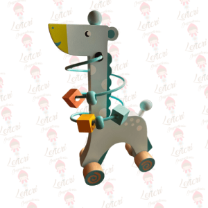 Este encantador set de juguetes de madera es perfecto para estimular el desarrollo integral de los niños a través del juego interactivo y educativo. Incluye tres piezas: un laberinto de cuentas en forma de jirafa, un apilador de anillos de colores y un cubo para encajar formas geométricas.