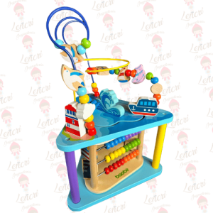 Incluye un recorrido de cuentas para deslizar, un ábaco con bolas de colores y un panel con piezas móviles para seguir caminos, todo con un diseño marino que invita a la exploración y el juego creativo. Fabricado con materiales seguros, resistentes y pintura no tóxica, este centro es una opción duradera y educativa para los más pequeños.
